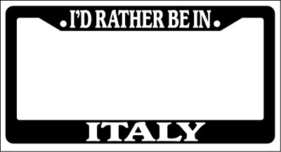 Black License Plate Frame I'd Rather Be In Italy Auto Accessory Novelty