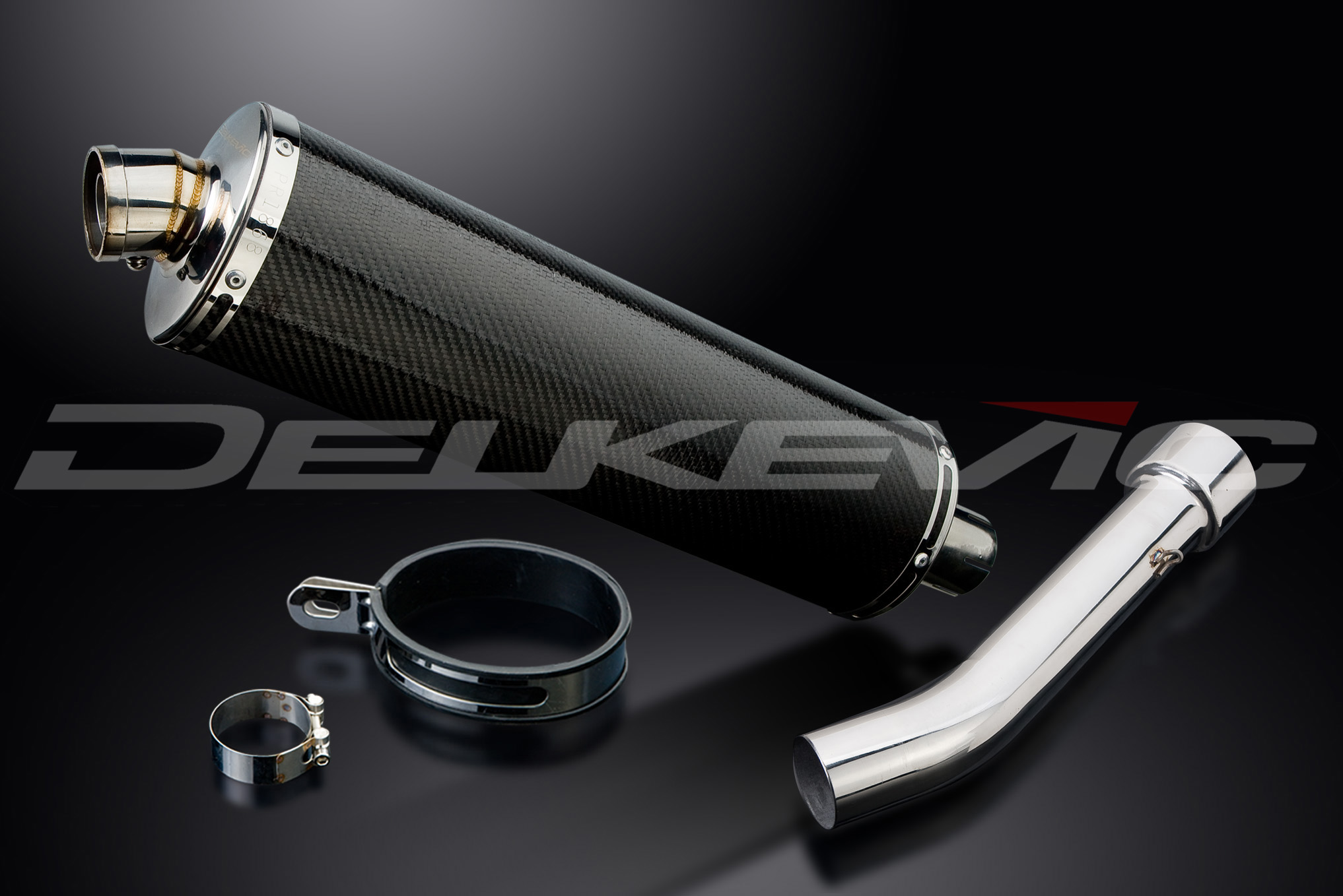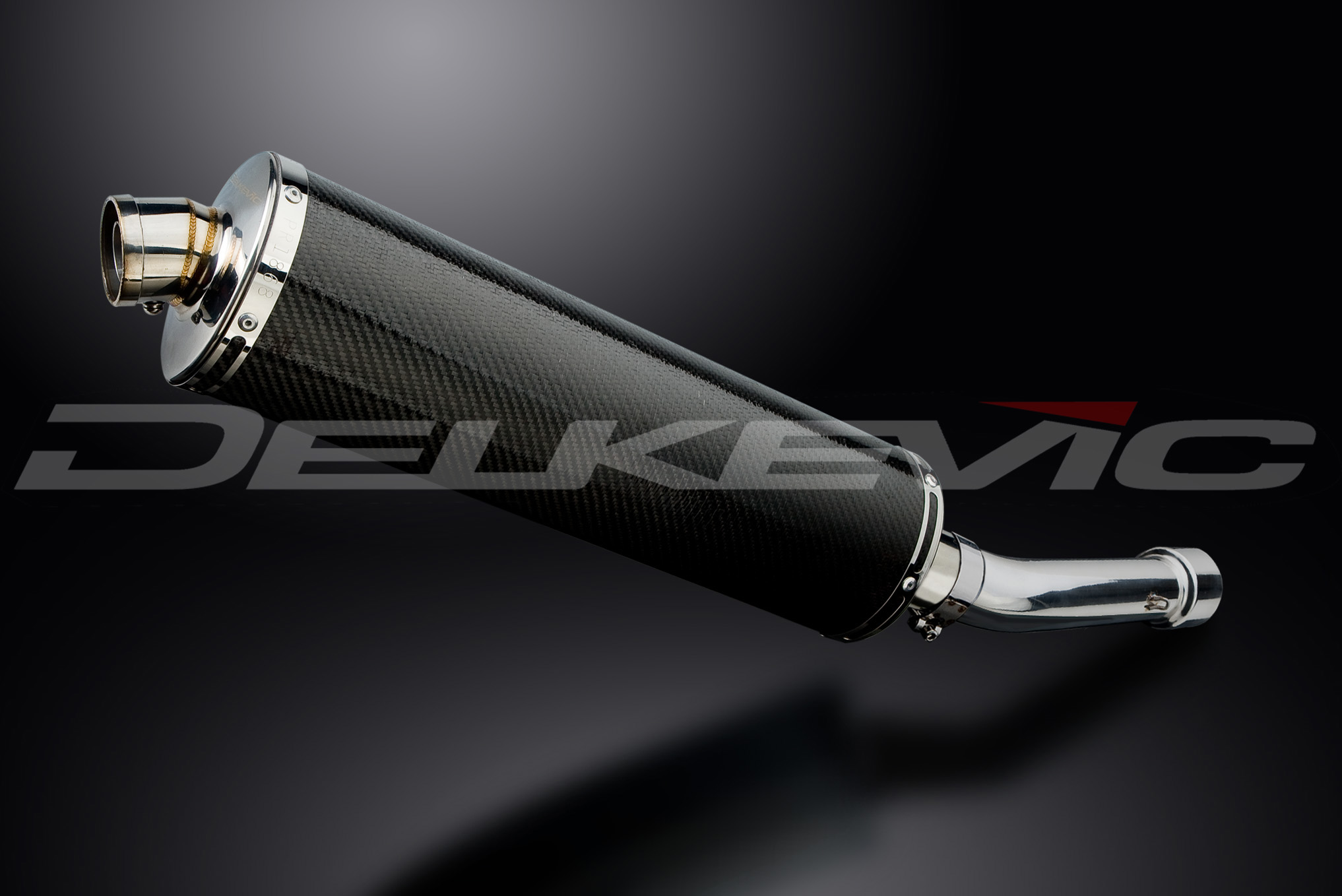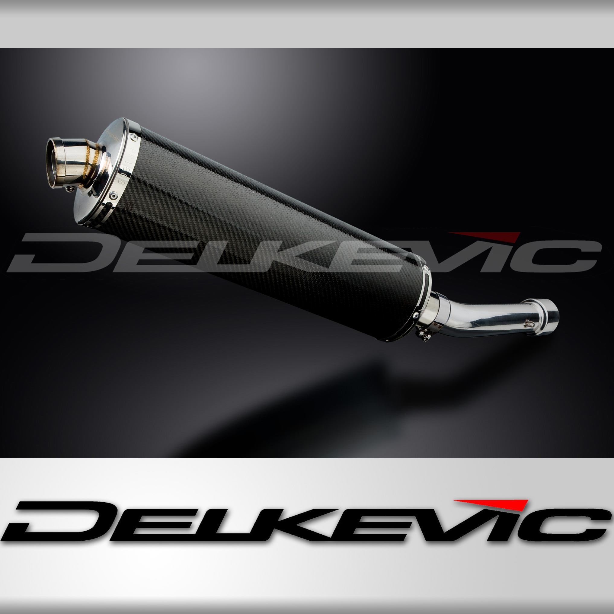 Delkevic 18" oval carbon fiber mufflers are made from a pre-formed composite carbon fiber sleeve and high grade 304 stainless polished to a mirror finish. With all hand welded parts and careful attention to detail, they have a deeper sound even at higher revs.