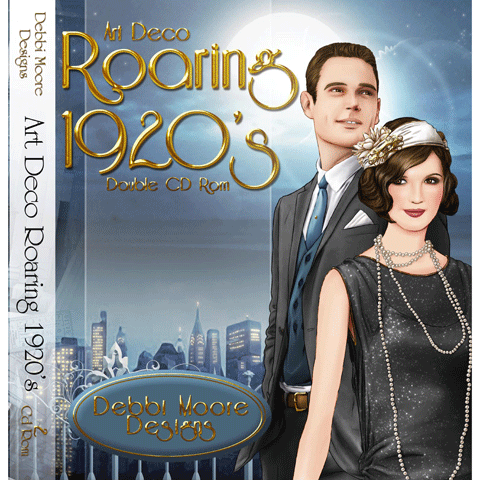 DESCRIPTION 1 x Debbi Moore Designs Art Deco Roaring 1920's Double CD Rom This easy to use CD contains over 850 different elements that you can print out over and over again. This Roaring 1920's Double CD rom contains Papers, Decoupage, Tags, Pyramid Magic, Design Sheets, Inserts, Quickcards, Envelopes, Scenes, Embelishments and Flowers. This CD also contains a verse writer option, which will enable you to input your own text and personalize your projects All CD's are designed to work with any computer, please contact Debbi Moore Designs direct on 01325 465049 should you have any problems This is a new product in sealed case