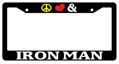 Black License Plate Frame Peace Love And Iron Man Auto Accessory Novelty