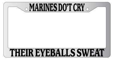 Marines Don't Cry, Their Eyeballs Sweat Chrome license plate frame made from high impact ABS plastic, chrome plated, and covered with color vinyl printing. - This frame is designed to last. Steel chrome frames when they get scratched will rust and rot away.