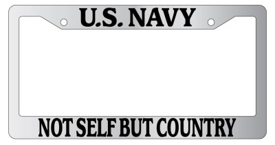 U.S. Navy, Not Self But Country Chrome license plate frame made from high impact ABS plastic, chrome plated, and covered with color vinyl printing. - This frame is designed to last. Steel chrome frames when they get scratched will rust and rot away.