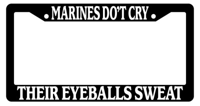 Marines Don't Cry Their Eyeballs Sweat Black license plate frame made from high impact ABS plastic, covered with color vinyl printing.
