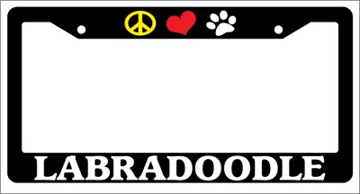 Black License Plate Frame Peace Love Paw Labradoodle Auto Accessory Novelty