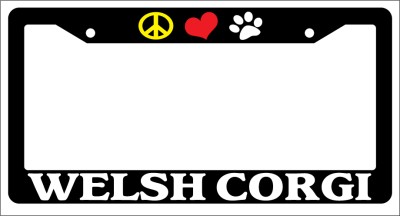 Black License Plate Frame Peace Love Paw Welsh Corgi Auto Accessory Novelty
