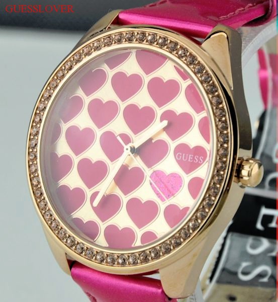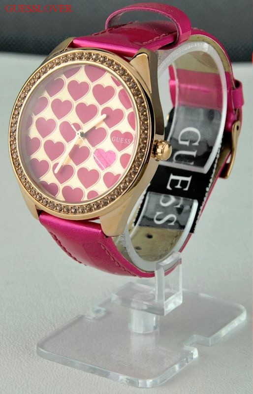 Genuine Strap Leather. Guess emblem inside the plate. Round around the faceplate. One-push button. Three hands Pointers. Japan Quartz Movement. Stainless Steel Back. Water Resistant. Special Made Guess Classoc Watch Collections. New Collection from GUESS USA. Lots of crystals ouside the watch. Limited Collections only. Pink outer bracellet. Crystals & Gold bezel with Gold color with Pink Heart inside faceplate. Ship Super FAST from USA (If pay with EXPRESS MAIL).