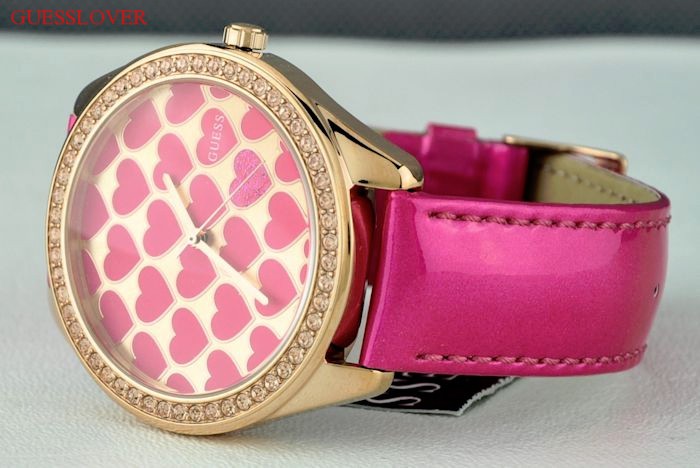 Véritable cuir du bracelet. Guess emblème à l'intérieur de la plaque. Ronde autour de la façade. Un bouton-poussoir. Trois mains Pointers. Japon Mouvement quartz. Dos en acier inoxydable. Résistant à l'eau. Made spécial Devinez Classoc Regarder Collections. Nouvelle collection à partir GUESS Etats-Unis. Beaucoup de cristaux ouside la montre. Collections limitée. Bracellet extérieur Rose. Cristaux et lunette en or avec la couleur or avec le coeur rose au coeur de façade. Navire rapide superbe de Etats-Unis (Si paiement par courrier).