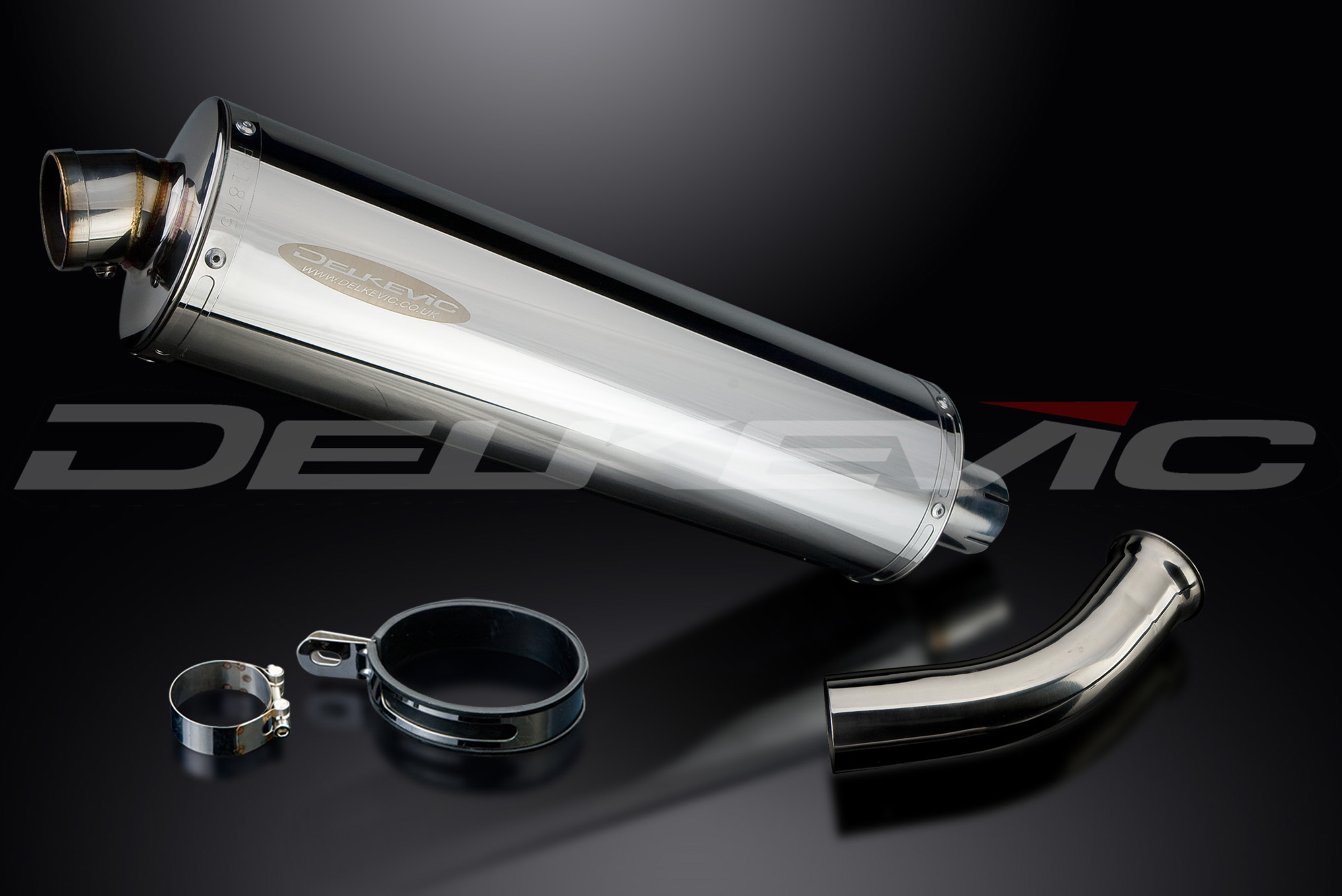 Delkevic 18" oval stainless steel mufflers are made from high grade 304 stainless steel and polished to a mirror finish. With all hand welded parts and careful attention to detail, they have a deep sound even at higher revs.
