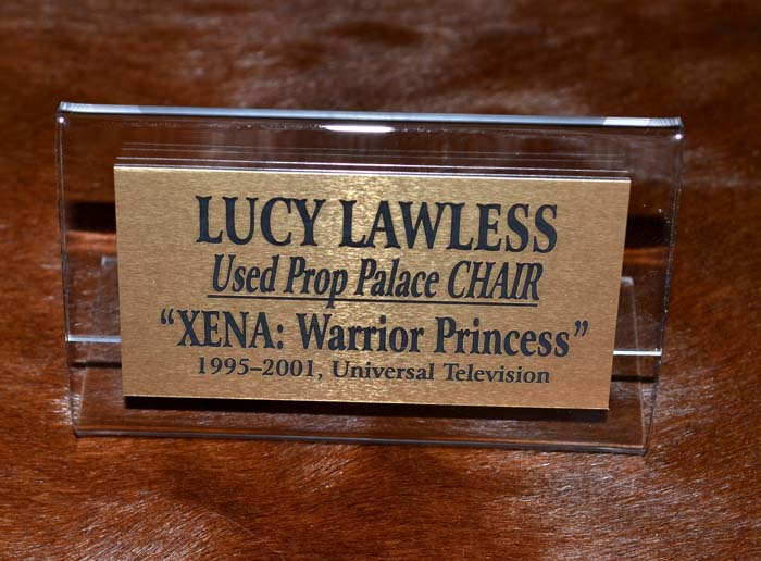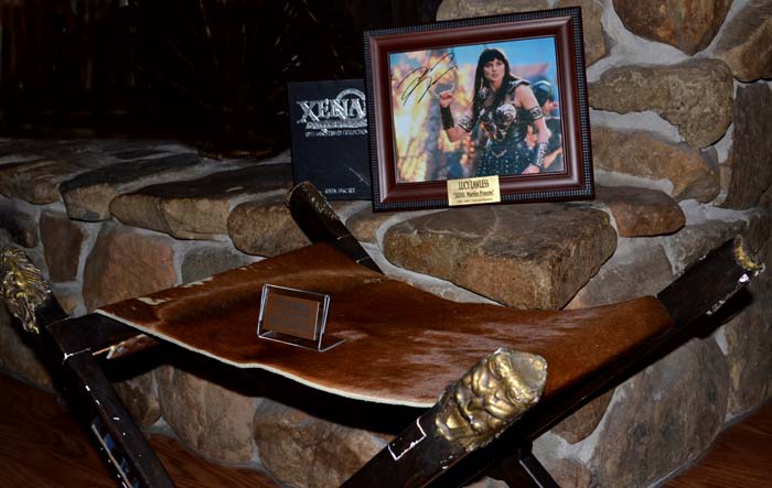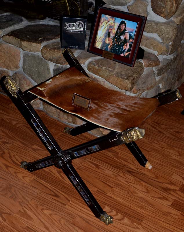 A Great TV Show ...A Great Collection! A Wonderful Gift or Investment! This is a great "XENA Warrior Princess" Collection from the Classic TV SHOW, starring Lucy Lawless! This collection consists of a screen-used prop chair from the filming of the show used in many episodes! This unique display also includes Lucy Lawless's original signed autograph in a wooden frame with an engraved plaque, all ready to display. You also get a DVD set of Xena so you can see your prop being used in the show and a RARE Xena Action Figure from Hercules.