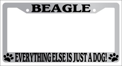 Beagle Everything Else Is Just A Dog! Chrome license plate frame made from high impact ABS plastic, chrome plated, and covered with color vinyl printing. - This frame is designed to last. Steel chrome frames when they get scratched will rust and rot away.