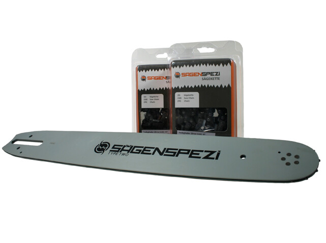 Mit zwei qualitativ hochwertigen Sägenspezi Halbmeißelketten mit hoher Schnitt- und Stechleistung und guter Standzeit für den universellen Einsatz. Mit Rückschlagschutz (Kickback-Safety) durch Sicherheitstreibglieder. Aufgrund der abgerundeten Zahnform unempfindlicher gegen Verschmutzungen und Abnutzungserscheinungen. Kennzeichnend sind ausserdem das weiche Schneidverhalten, die geringe Ratterneigung und die niedrige Vibrationsneigung.
