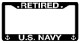 Retired U.S. Navy Black license plate frame made from high impact ABS plastic, covered with color vinyl printing.