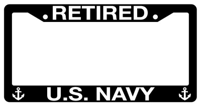 Black License Plate Frame Retired U.S. Navy (Anchors) Auto Accessory Novelty