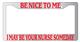 We do all kinds of different products. Check out our eBay store! We can do these frames for any design saying. We are showing 24 in this ad but we can do all of them. Just send us the name of the design you want. We can also do your custom saying. We also do custom products for businesses, organizations, high schools and fundrasiers. Email us with any questions so that we can create an auction for it!Please let us know how we do! We are here to make you the customer happy and would like to hear from you. If you leave us good feedback, we will be more than happy to leave you good feedback. Neutral feedback is the same as negative feedback to us, if a problem does occur we would like to do everything in our power to make it right and deserve the 5 star rating! Please do not be afraid to contact us so that we can ressolve any issues. Thanks!Please note that the frame shown above may not be legal in every state and is the responsibility of the buyer too be aware of their personal state law. We are not responsible for any resulting fines or consequences resulting from attaching our frames in a state in which they do not meet state requirements. We are willing to accommodate your needs by changing the design of the frame to accommodate your state regulations. Please contact us through the Ebay message system and we will work with you to fit the design on a frame that meets your states requirements. Included in our picture gallery are example of frames that meet different state requirements to give you an idea of what they look like.