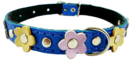 Gorgeous outstanding quality collar made of high quality genuine leather, soft felt padded, daisy flowers decorated.
