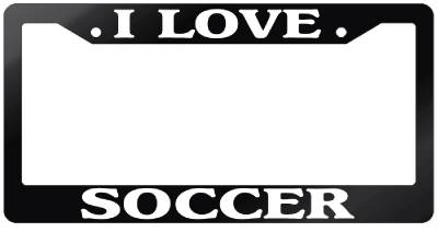 Glossy Black License Plate Frame I LOVE SOCCER Auto Accessory
