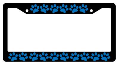 Black License Plate Frame PUPPY FEET (BLUE) Auto Accessory