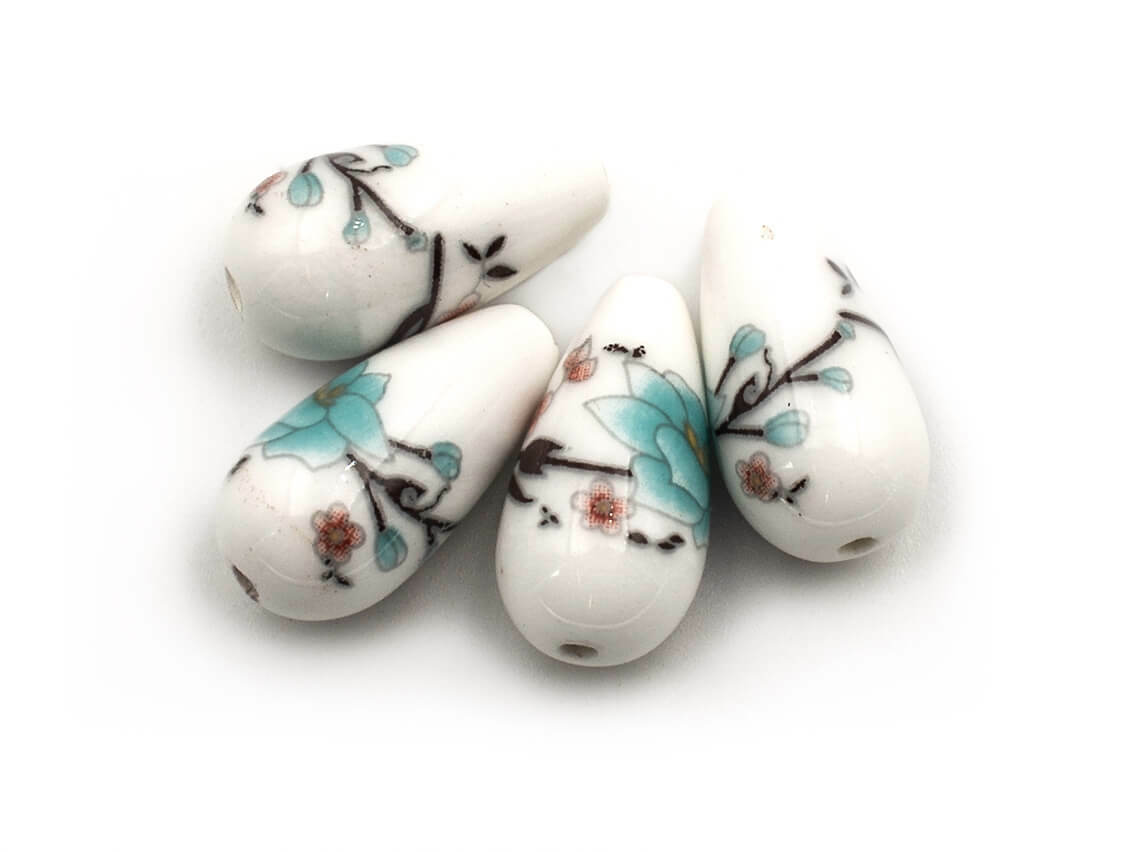 20 marmorierte Glasperlen in braun-türkis-weiß