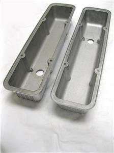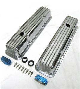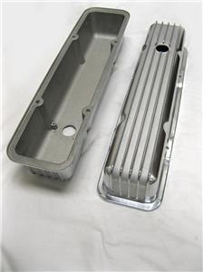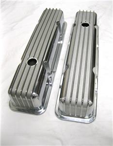 This listing is for a brand new pair of Nostalgic Finned Small Block Chevy Aluminum valve covers. These Valve covers have a nice, polished finish and includes all the necessary hardware. The finish on these is not perfect, don't expect them to be flawless for your "show car." But a great deal for this nice, heavy duty set.