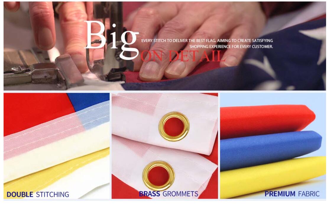 Craftsmanship - Made of durable polyester. Double stitched all around the edge and strengthened by canvas header and two brass grommets. You will fully appreciate the craftsmanship and quality of this flag