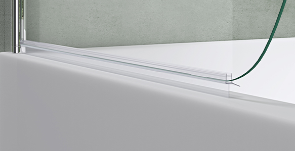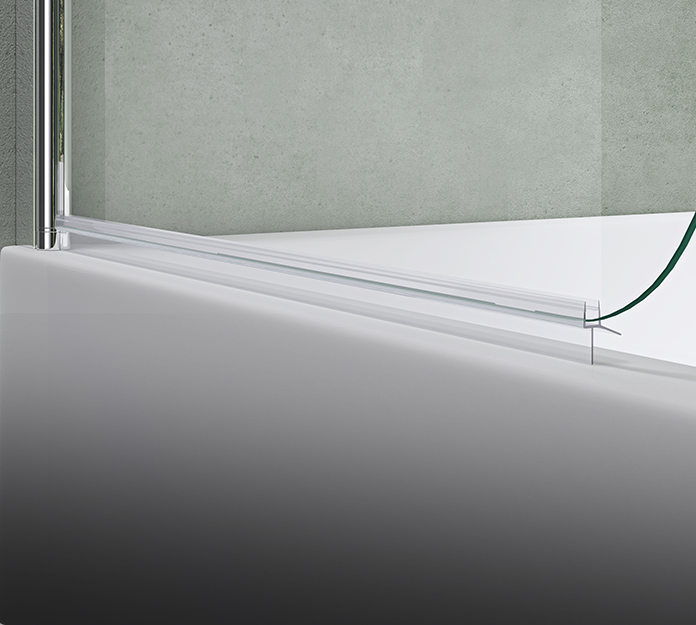 Die Hebe/Senktechnik erleichtert das Öffnen der Faltwand und sorgt für einen dichten Anschluss zur Badewanne im geschlossenen Zustand.