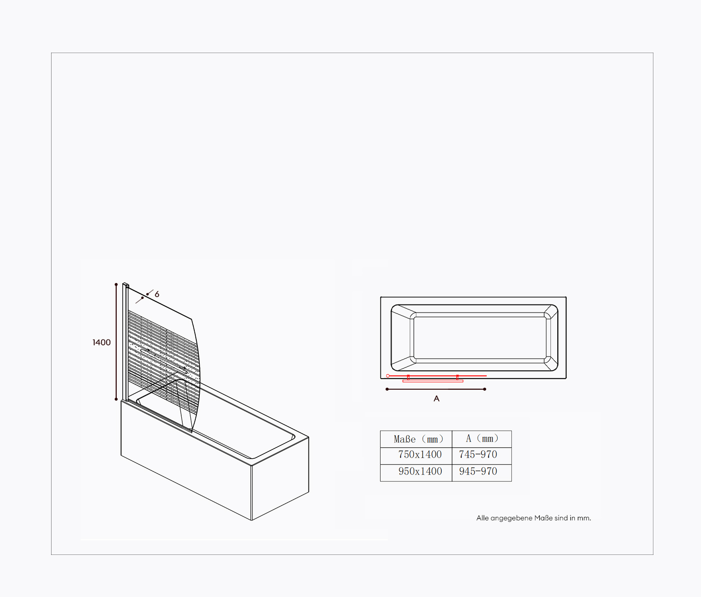 In unserem Shop sind weitere Faltwände in vielen weiteren Glasfarben für Ihre Badewanne erhältlich, die zu einer Vielzahl von Stilen passen.