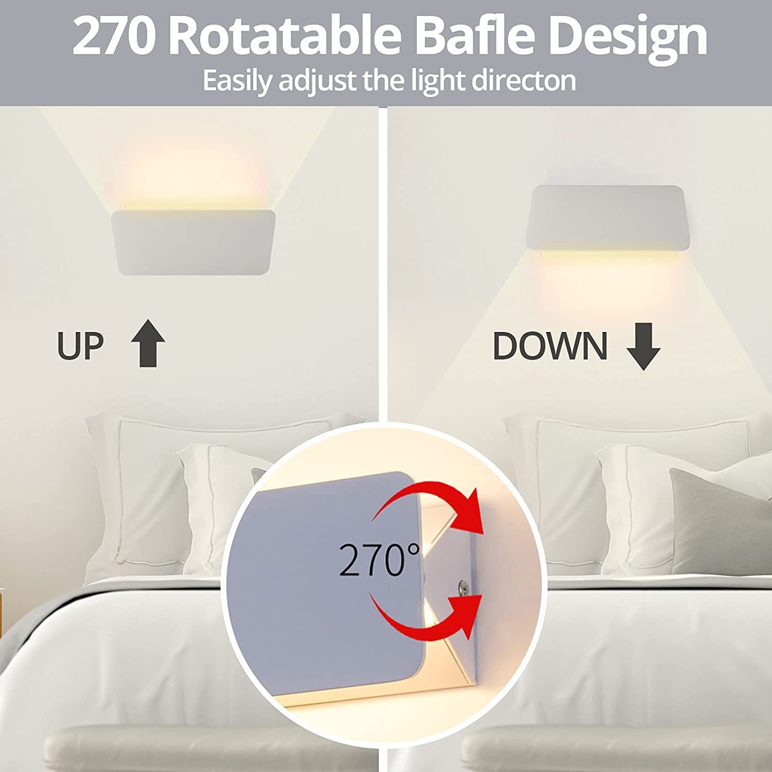 5W/10W/15W LED Wall Lamp Up/Down Angle Adjustable Indoor Light Fixture Aluminum