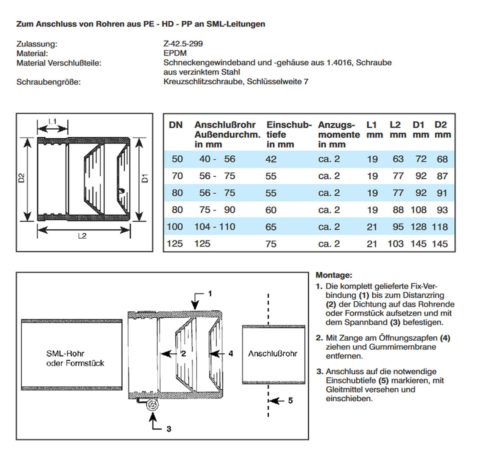 SML Konfix. Universal Gummi Verbinder für Abflussrohre in den Größen DN 50 bis DN 125.