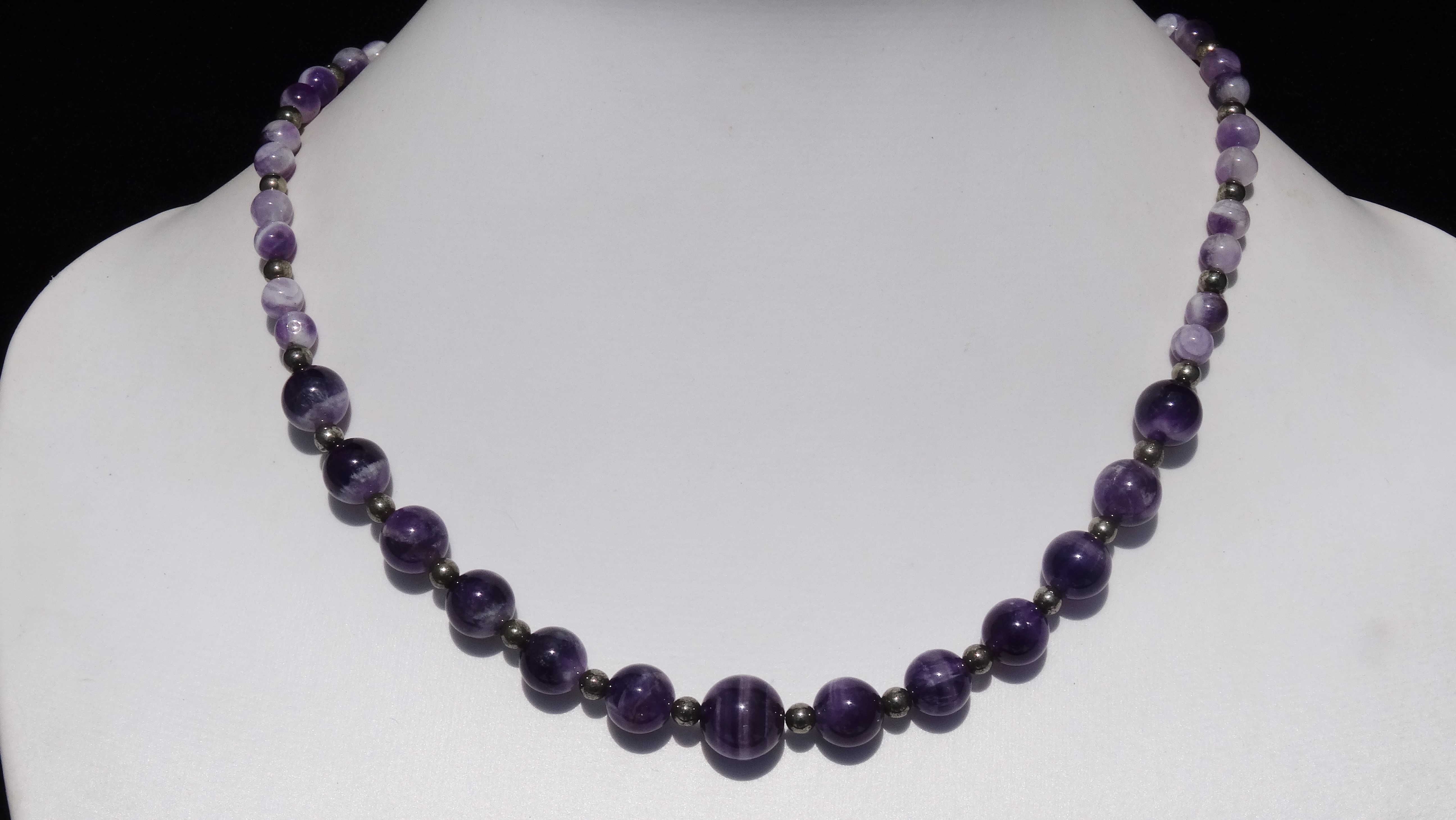 Sie bieten auf eine handgemachte Amethyst Pyrit Kette Länge: 46 cm Gewicht: 36 g Verschluss: T-Verschluss
