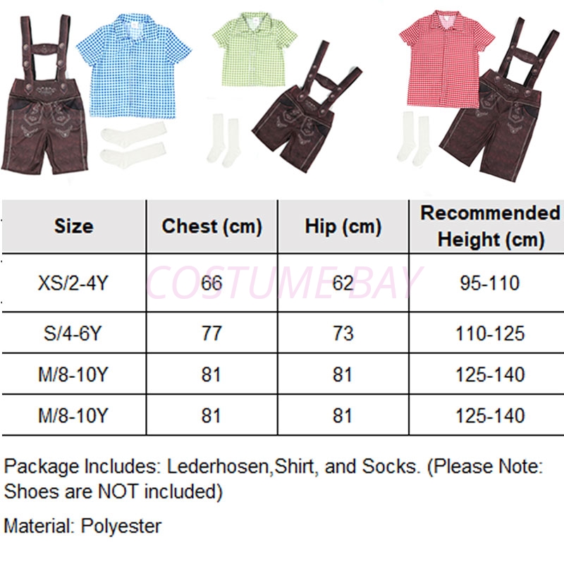 Lederhosen, Shirt, and Socks. (Please note: Shoes and beer mug are NOT included) |