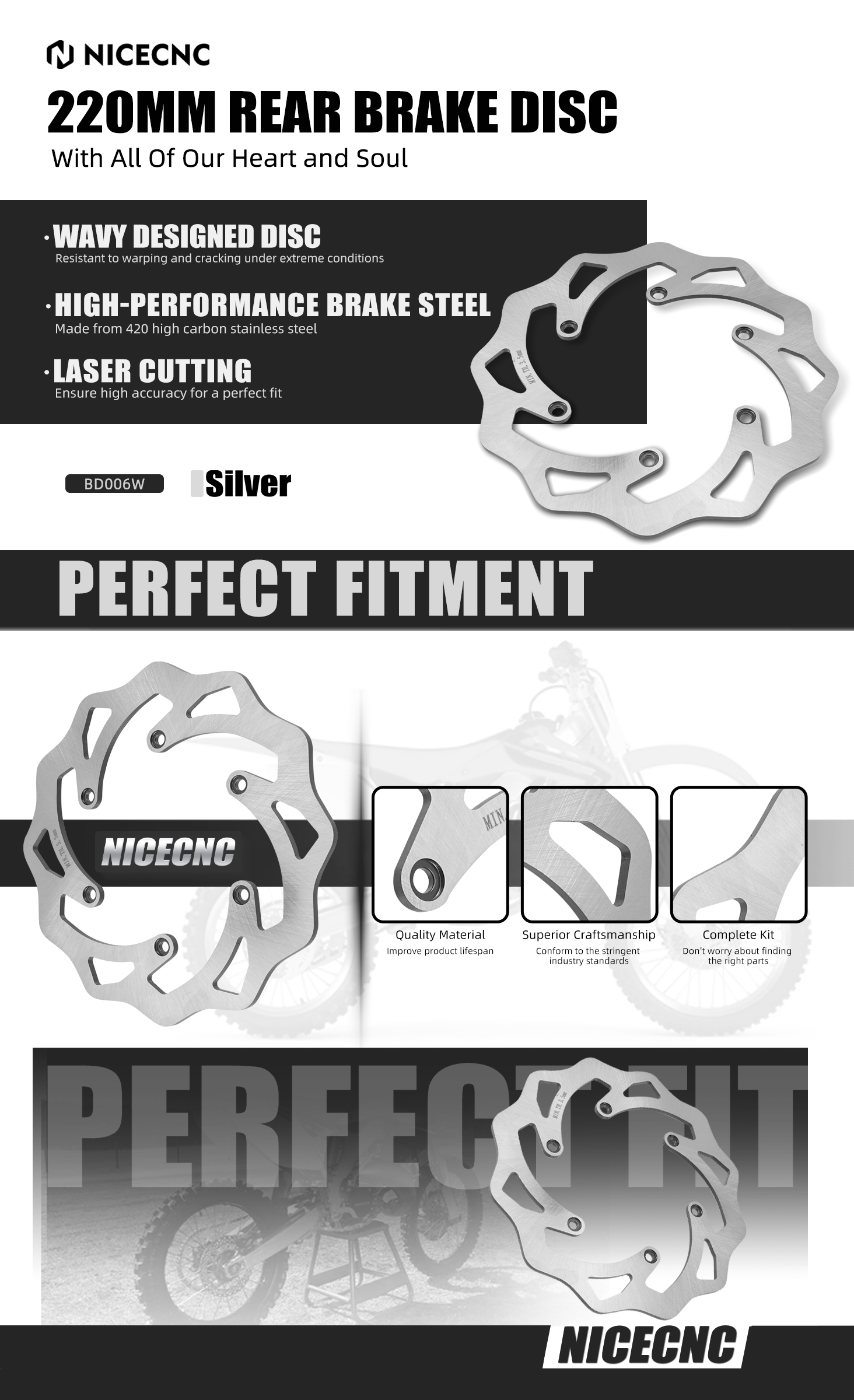 The Brake Disc Rotors are made from 420 high carbon stainless steel with the best manufacturing process. Wavy designed outer disc shape help to keep brake pads clean and dissipate heat and provides outstanding braking performance but the minimum pad wear.