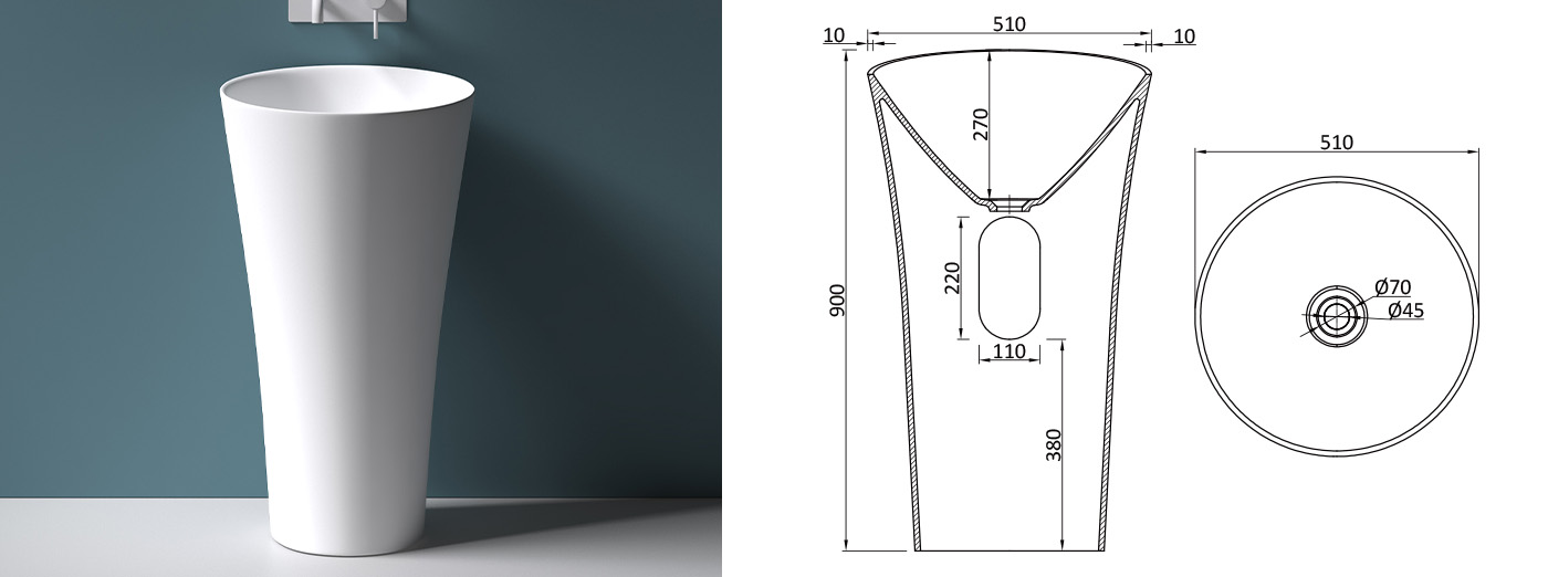 Das Mineralguss-Waschbecken ist in einem Stück gegossen, dann per Hand poliert und zeigt als ein Kunstwerk eine spezielle Beschaffenheit.