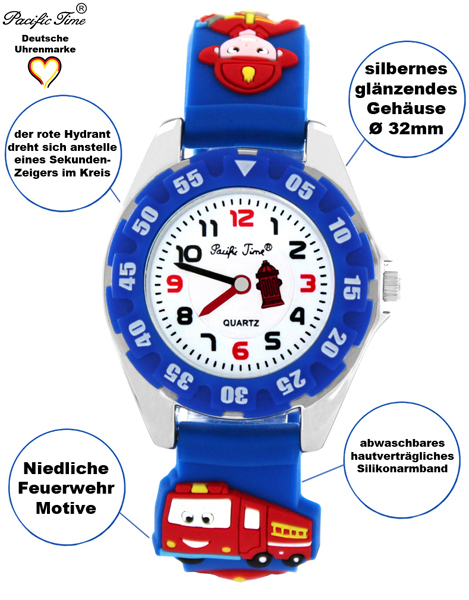 Sehr empfehlenswert - für alle Kids der Freiwilligen Feuerwehr - zum Geburtstag Ostern Nikolaus Weihnachten und auch zur Einschulung für die Schultüte / Zuckertüte - da kommt richtig große Freude und Begeisterung auf ----- Alle weiteren Feuerwehr Armbanduhren aus der aktuellen Pacific Time Kollektion finden Sie in unserem ebay Shop in der Kategorie Kinder Armbanduhr Feuerwehr.