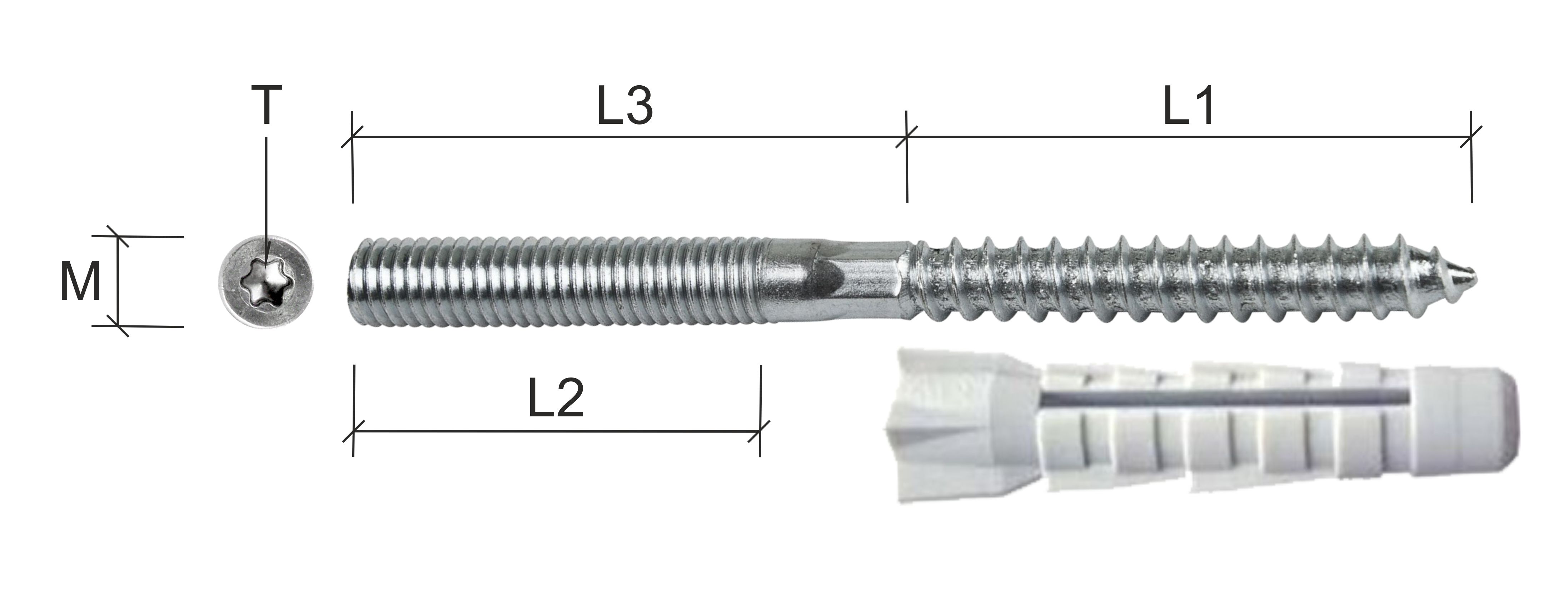 Wählbar mit oder ohne Stockschraube und passender Dübel.