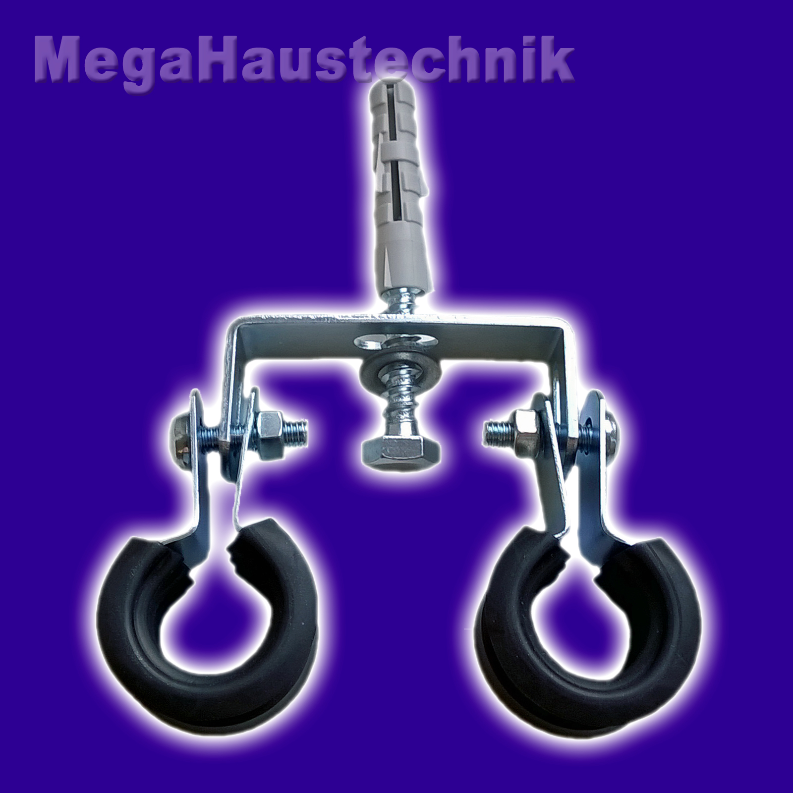 Zweischrauben Gelenkschelle mit Schallschutz + Stockschraube/Dübel (mengenrabatt inkl.versand)