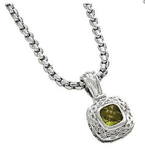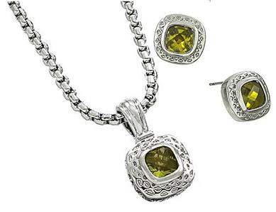 - olive green soft square cut crystal petite pendant necklace set - bali design