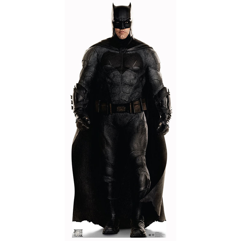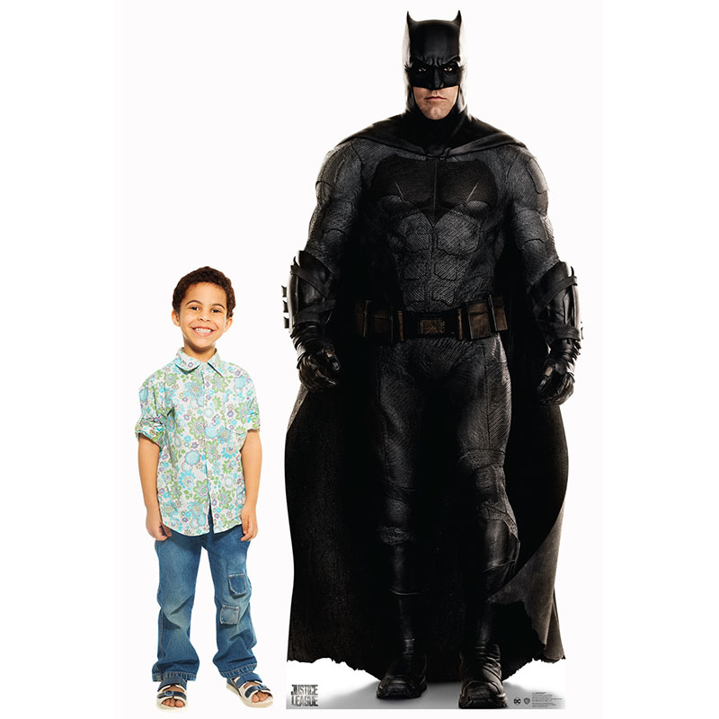 In the 2017 blockbuster movie "Justice League", Batman and Wonder Woman team up with a band of superheroes to fight Steppenwolf and his Parademon army. Ben Affleck reprises his role as the Dark Knight and appears on this lifesize (6' 4" tall) cardboard cutout.