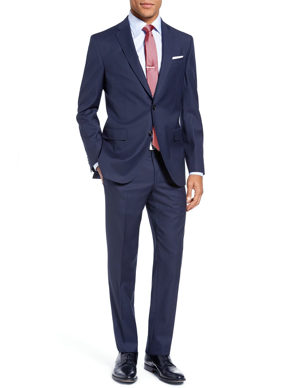 Luciano Natazzi Year Round Use Suit. A modern business suit for all season. JACKET: 2 button, single breasted, side vents, 3 pockets 2 with flaps, lapel notched, 4-button vented sleeves with working buttonholes. Quality full lining. PANTS: Flat Front dress pants, lined to just below knee 2 back pockets with buttons, length unfinished, inside waistband for reinforcement, trousers come in a 6" drop. The waist can be altered up to 2 inches in or out. Hand Tailored. - Constructed with the finest detailing and highest quality with top finishing. 65% Poly 35% Viscose. Dry clean, Imported, Made in PRC