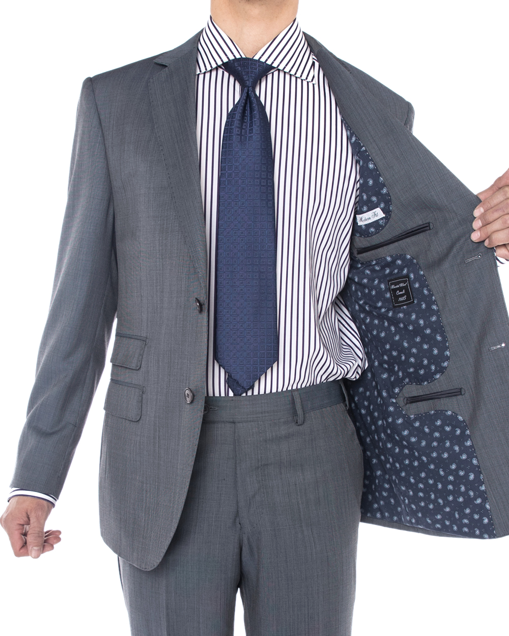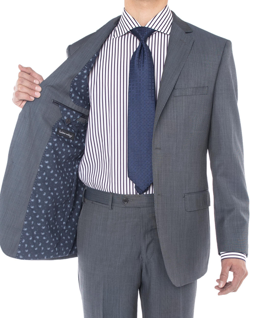 Luciano Natazzi Men's 2 Button Bird's Eye Super 160'S Worsted Wool Suit, Trim-Fit Jacket Flat Front Pant. A pick stitch along the outside of a lapel is a hallmark of a "high-end, hand-made" men's suit or blazer. This suit is factory hanger packed with all tags in place. Please choose the size you normally wear in designer Men's suits. JACKET: 2 button, single breasted, side vents, Ticket pocket, Outside 4 pockets 3 with flaps, Inside pockets, notch lapel, 4-button vented sleeves with working buttonholes. Quality full lining. PANTS: Flat Front dress pants, lined to just below knee 2 back pockets with buttons, length unfinished, inside waistband for reinforcement, trousers come in a 6" drop. The waist can be altered up to 2 inches in or out. Hand Tailored. 90% Worsted Wool 10% Polyester, Imported China. Dry Clean -------Up to 5'.7" tall go with "S" ------- 5'.7" - 5'.11" tall go with "R"-------5'.12" - 6'.4" tall go with "L"-------