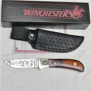 Excellent quality US-made Straight Hunter (model 670) manufactured by WINCHESTER ARMS for the North American Hunting Club in 1990. This specimen is a more scarce "Life Member" type - mint with original sheath, retail box, and COA. The knife was part of the 8-knife US-made Hunting Heritage Collection series ordered by the NAHC in the early 90's.