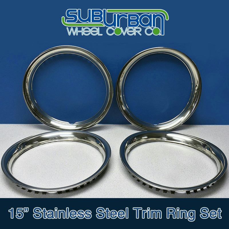 This listing is for a brand new set of 4 aftermarket polished stainless steel trim rings. They have an approximate depth of 1 3/4" which is the most common depth. They will fit most 15" steel wheels. They are constructed out of stainless steel which will never rust and provide a long lasting finish. 360 degree steel clips provide a superior fit.