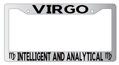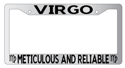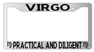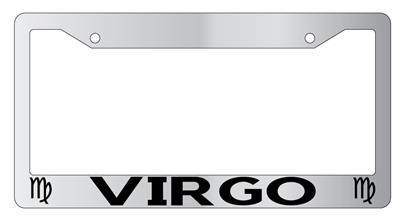 Chrome License Plate Frame Auto Accessory Virgo made from high impact ABS plastic, chrome plated, and covered with color vinyl printing.