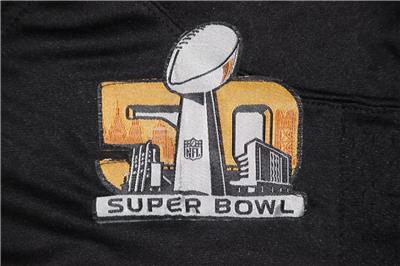 All numbers patches and players name are sewn on patches as is the Super Bowl 50 Patch and Flag on right sleeve