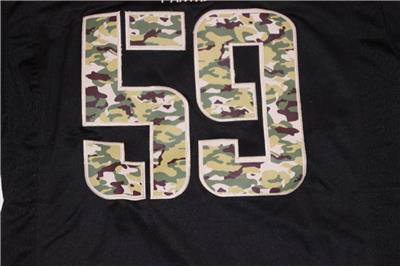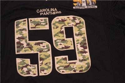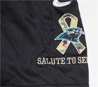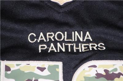 Carolina Panthers over the # 59 on front of the Jersey is embroidered as is Salute To Service on left sleeve