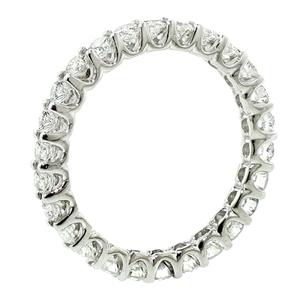 This magnificent all around diamond eternity wedding band is made of 14k white gold, plated with rhodium. U-prong set, G/H-color and SI1/SI2 clarity round diamonds weigh a total of 1.60-2.10 Ct. This gorgeous ring is also available in 18k white gold or platinum settings. *Exact number of diamonds and carat total weight will vary depending on ring size.