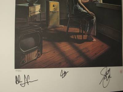 If you're a RUSH fan you will fall in love with this rare and very limited item, this stunning lithograph has been produced on museum rag paper stock, it is a quality item which is meant for framing. This very collectible item has been hand signed by all 3 members as shown in the photos, there were only 500 of these items ever released worldwide making them one very sort after item. This particular lithograph is numbered 467 out of 500. This stunning lithograph has been custom framed with no expense spared. It has a black timber frame with a black suede matting. The measurement for this framed item is 79cm in height by 75cm in width, the image measure's 57.5cm by 53.5cm. The signatures signed on this amazing item are: