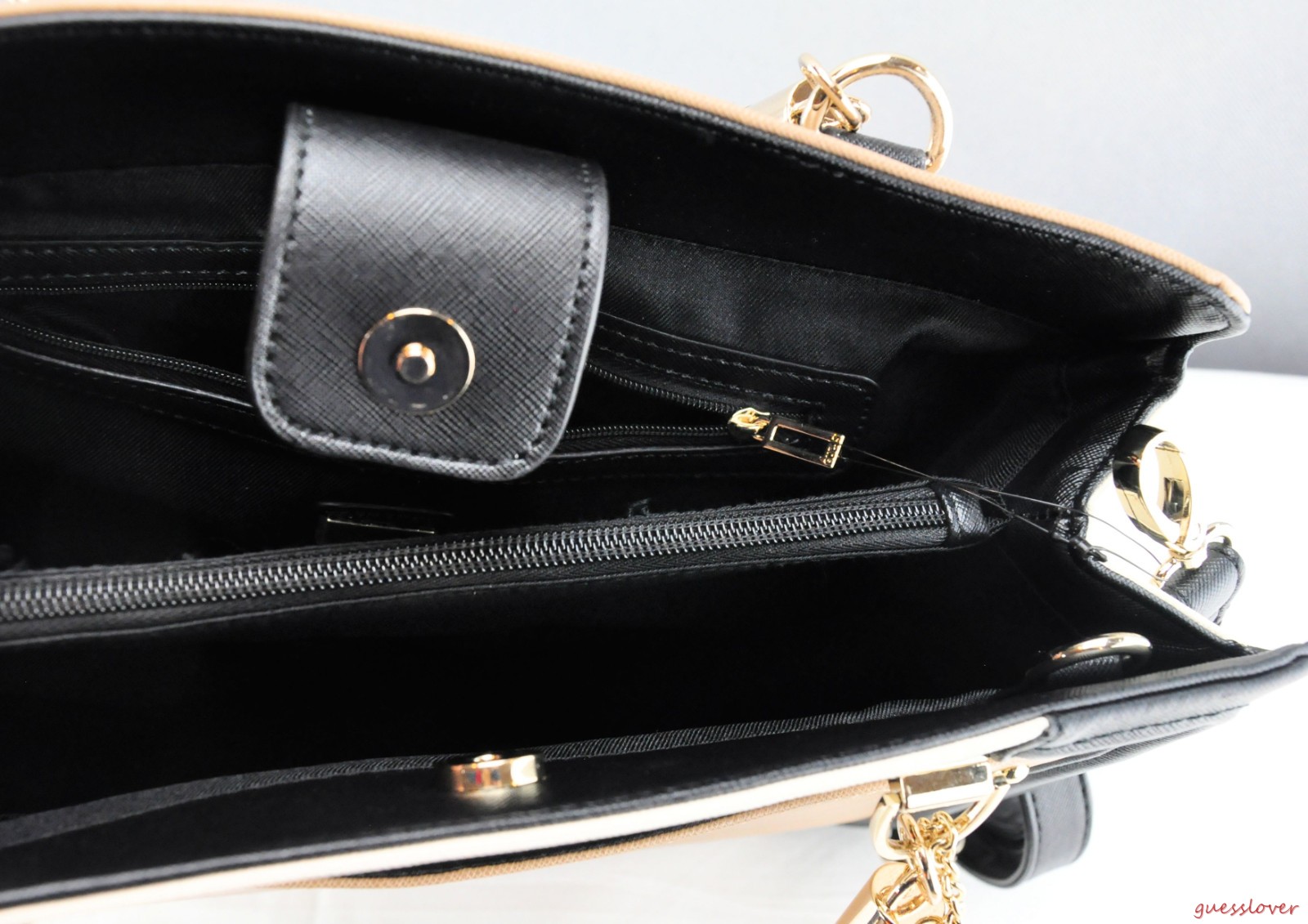- GENUINE and AUTHENTIC GUESS Handbags Collection - Black Color outer - Silver Studs and Hardware - Dual Straps and Detachable Shoulder Straps - GUESS Logo on the body bag - Inside: One Large Compartment - One zipper slots, a Cellphone slots, and two small slip pockets - Top Zipper Closure