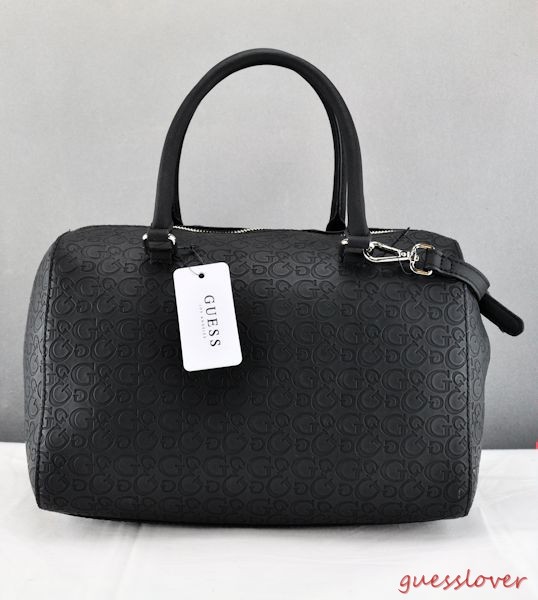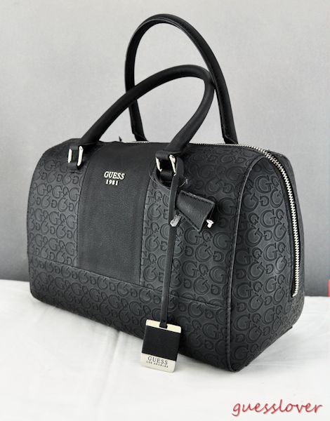 - GENUINE et AUTHENTIC GUESS Collection de sacs à main - Couleur noire extérieure - Clous et matériel en argent - Bretelles doubles et bretelles détachables - Logo GUESS sur le sac de voyage - À l'intérieur: un grand compartiment - Une fente à glissière, une fente pour téléphone portable et deux petites poches plaquées - Fermeture à glissière supérieure