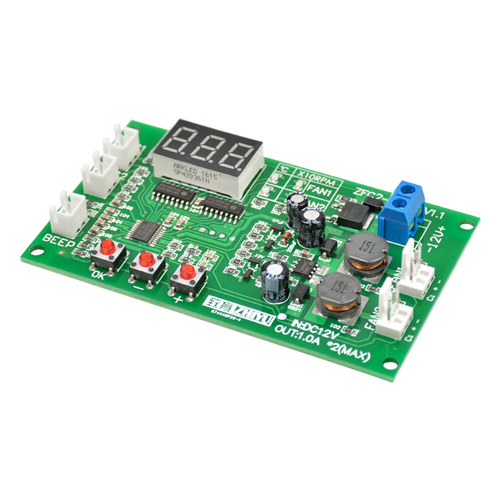 Support all within 12V 5A fans, synchronous rectifier output, high efficiency! Even if a large current work does not require additional heat sink! A plurality of fans can be used in parallel (total current does not exceed 5A), supports automatic temperature control and manumotive speed control, temperature control speed with four temperature zones for setting up, easy to apply in a variety of applications! It can be opened with a three-wire fan monitoring function (stall warning).
