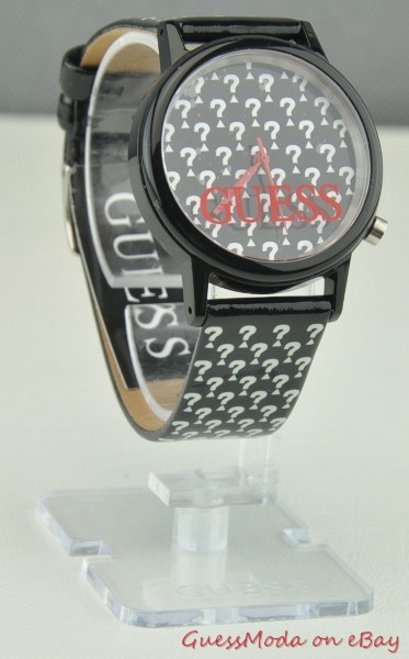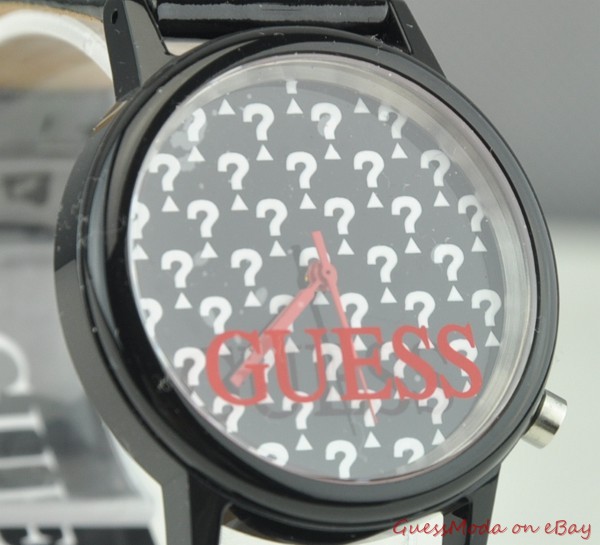 - GENUINE and AUTHENTIC GUESS Collection -GUESS Ladies Watch Collection - Black Genuine Leather Straps - Black Bezel & Black Base Inside Faceplate - Japan Quartz Movement - GUESS Question Mark Monogram - Water Resistant: Yes - GUESS Logo - Three Dial Pointer Inside & One Push Button